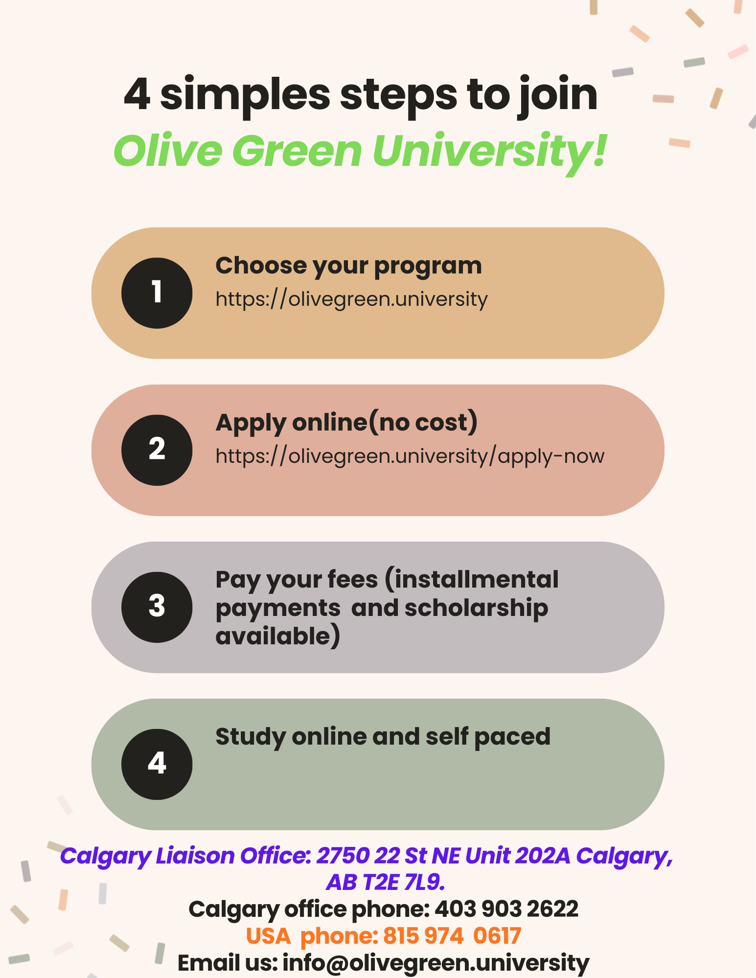 Soumettez facilement votre demande : https://olivegreen.university/apply-now