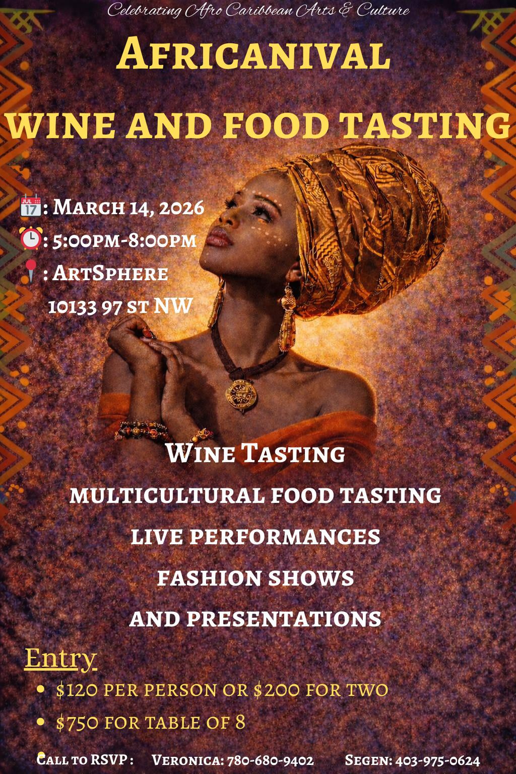 Get ready for an amazing evening of wine tasting and a unique multicultural food experience at ArtSphere on Saturday, March 14, 5-8 PM.