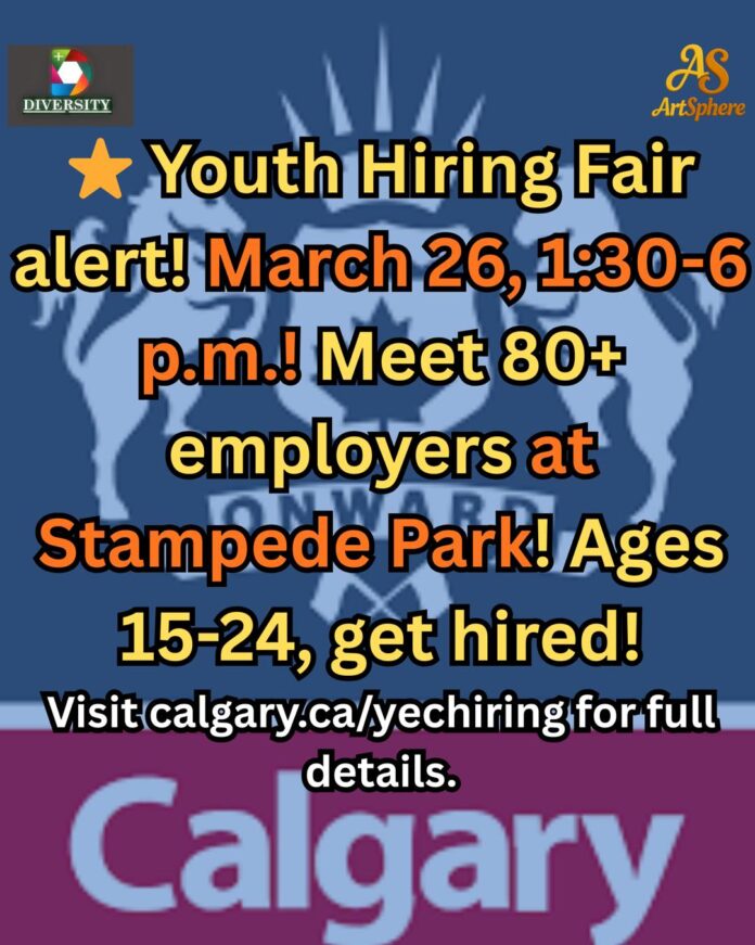 🎉 Préparez-vous, jeunes de Calgary ! La Foire de l’emploi pour les jeunes approche à grands pas ! 🕰️ Notez le 26 mars de 13 h 30 à 18 h sur vos calendriers ! Rencontrez 80 employeurs prêts à recruter au Big Four Building, Stampede Park. Pour les 15-24 ans, préparez-vous :