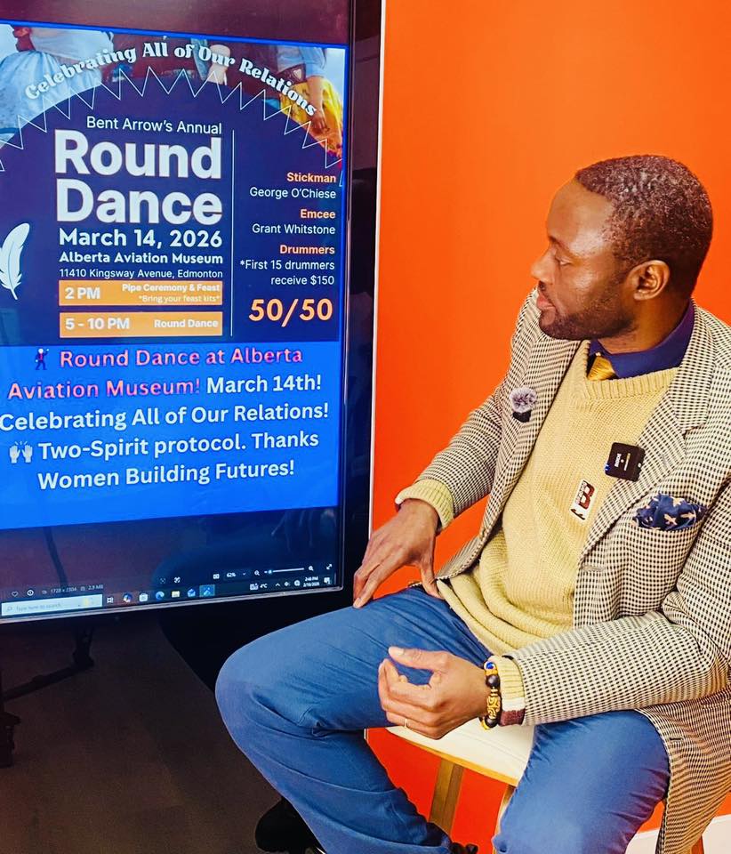 🕺 Danse ronde au Musée de l’aviation de l’Alberta ! Le 14 mars ! Célébrons toutes nos relations ! 🙌🏽 Protocole Two-Spirit. Merci à Women Building Futures !